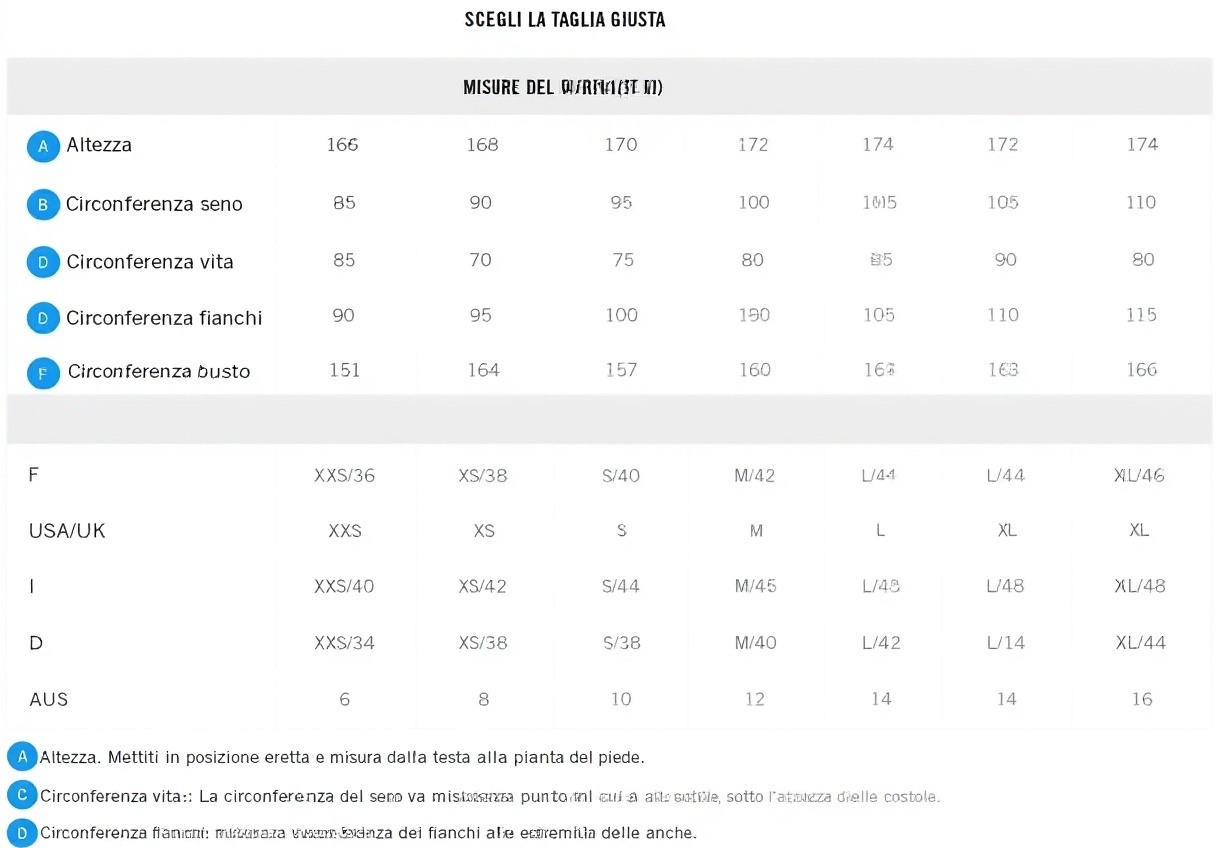 Disponibile in XS, S, M, L, XL; per la scelta, consulta la tabella taglie del brand in base alle tue misure per una vestibilità perfetta.