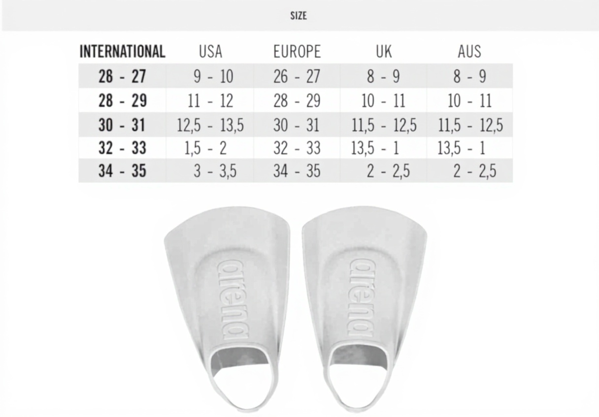 Le pinne Arena per bambini uniscono design ergonomico e materiali di alta qualità. Realizzate in elastomero termoplastico (TPE), sono morbide, flessibili e prive di PVC, garantendo comfort e sicurezza durante il nuoto. Il tallone aperto permette una vestibilità personalizzata e una maggiore libertà di movimento.